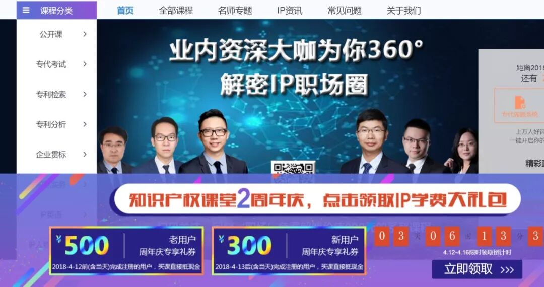 这是我们今年网校升级之后的页面,点击【阅读原文】即可进入。这里我插播一条广告,知识产权课堂两周年庆,IP学费免费领。