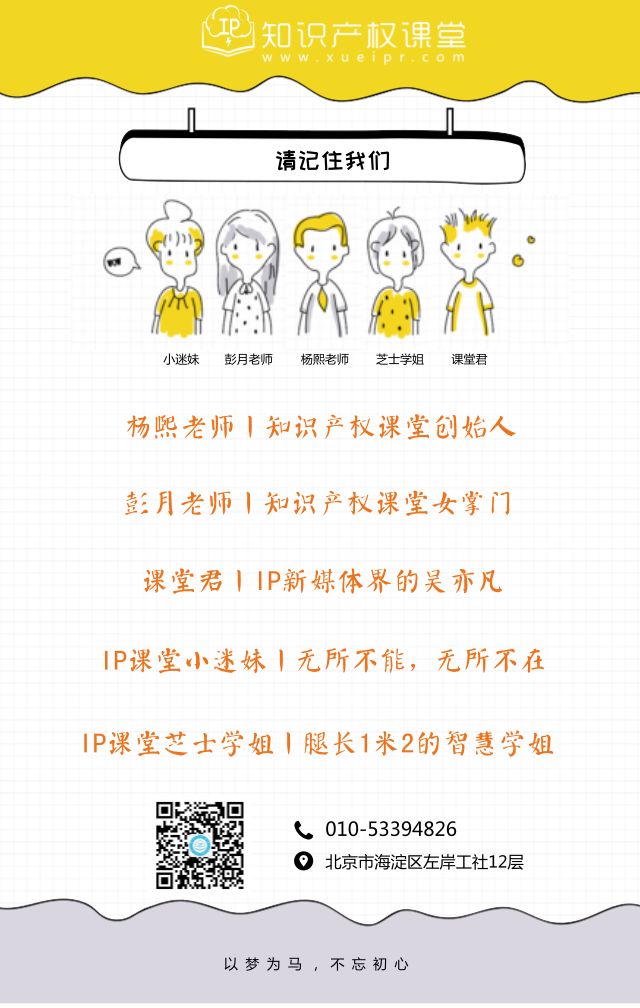 但是知识产权课堂,始终会不忘初心,以梦为马。