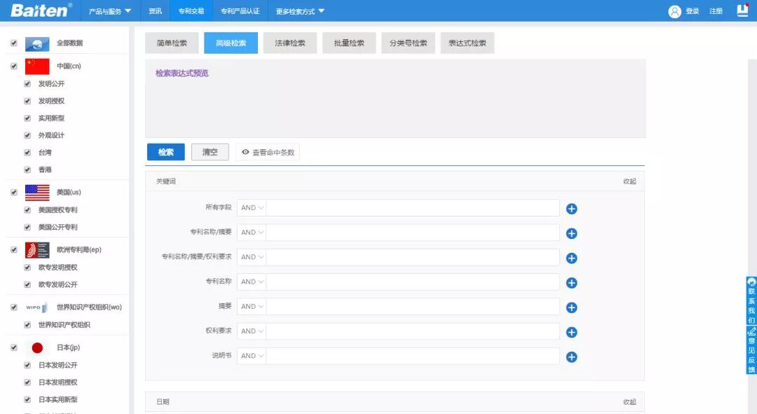 登录地址:https://worldwide.espacenet.com/?locale=cn_EP(欧洲34个国家均可检索)