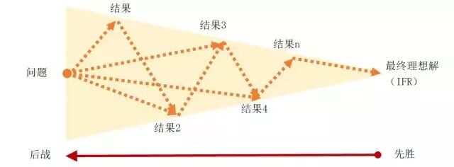 孙子说:“故善战者,立于不败之地,而不失敌之败也。”,又说“善战者先胜而后战,败兵先战而后求胜。”《孙子兵法》告诉我们要先赢了再打,先获得胜的结果再反推战的问题(如图4所示)。不要在战争中求取胜利,战争具有很大的不确定性,一旦开战就可能产生意想不到的结果。因此,不要拿国家民族的命运去赌小概率获胜的机会。“先胜后战”实际上就是解决军事问题的最终理想解(IFR)。