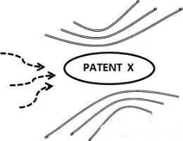 将竞争对手的特定专利以多个相关或衍生专利包绕的布局手段,这些相关或衍生专利可能初期并没有用处,但当该特定专利技术方案价值提升或应用增加后,这些相关或衍生专利就水涨船高而变得有价值。